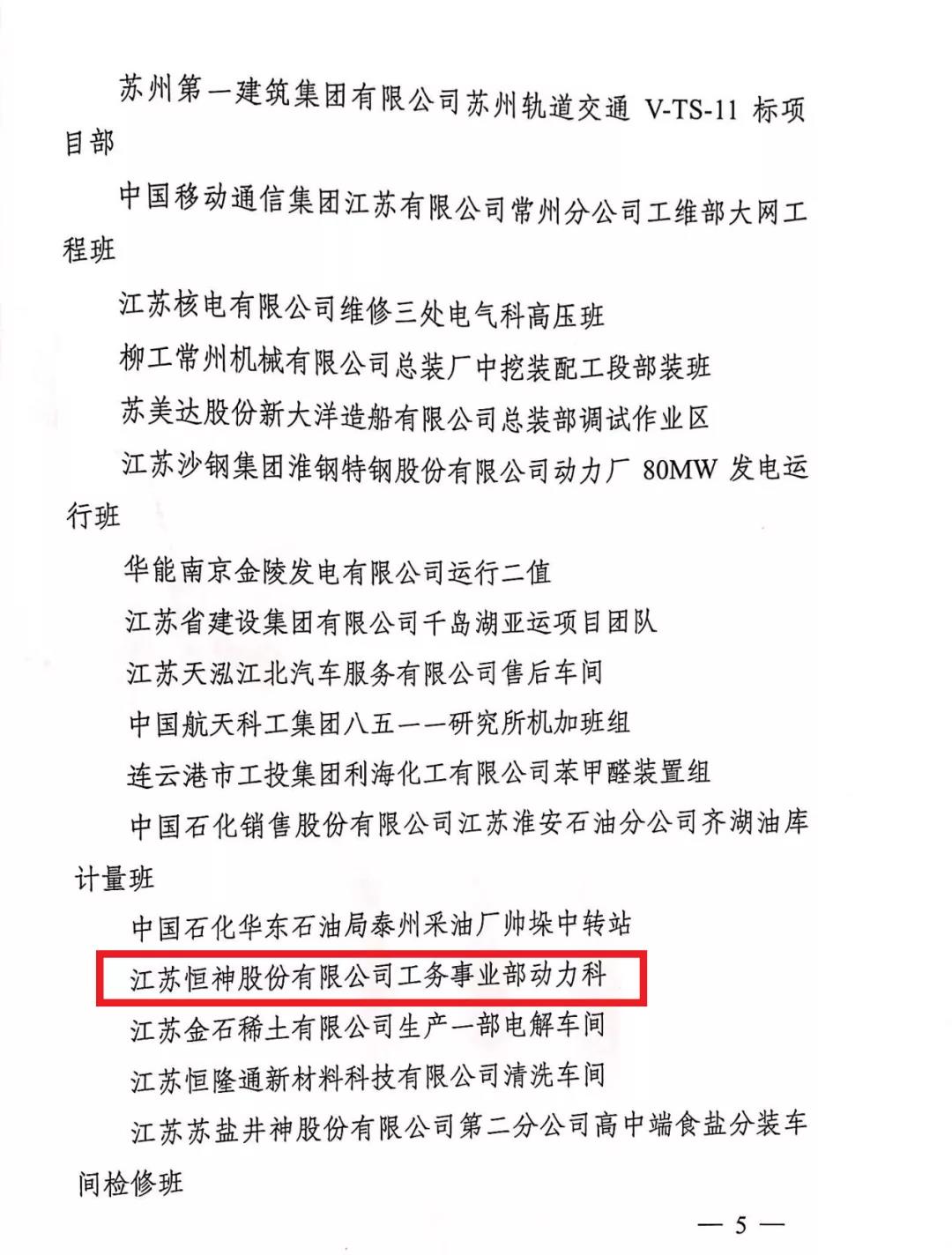 恒神股份工務事業部動力科獲得“2020年度江蘇省青年安全生産(chǎn)示範崗”榮譽稱(chēng)号