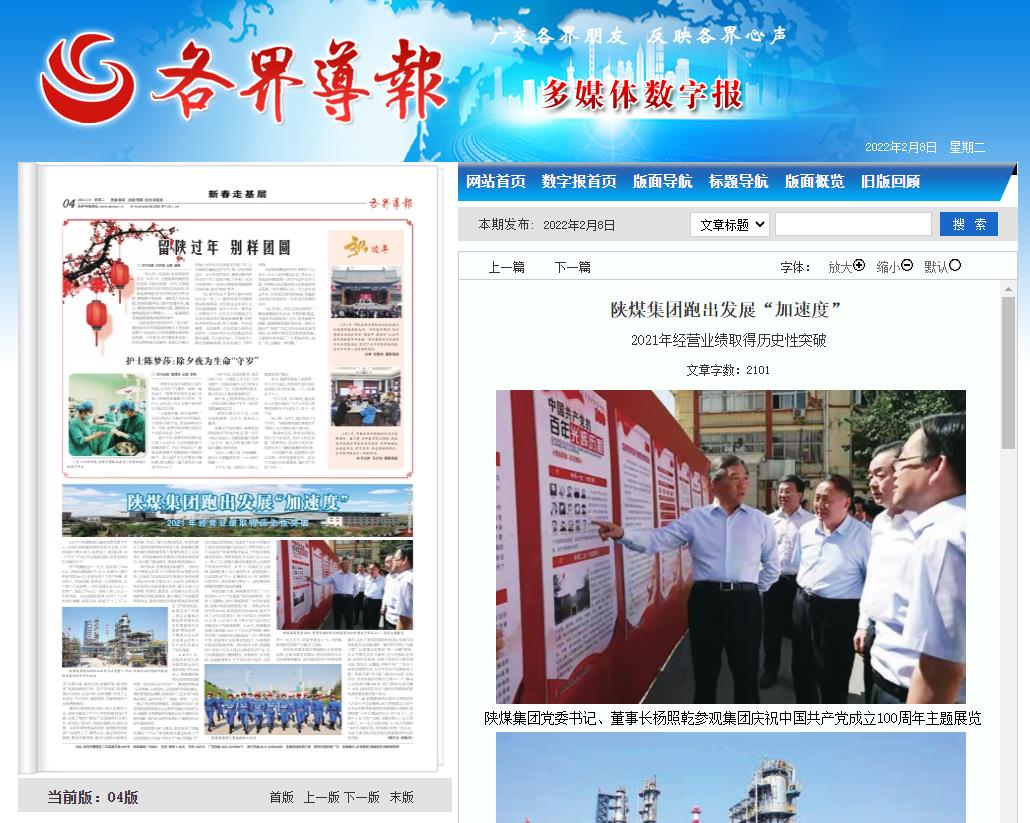2021年,陝煤集團以提高發展質量爲中心,以深化供給側(cè)結構性改革爲主線,以科技創(chuàng)新爲根本動力,迎難而上、攻堅克難,在“十四五”開局之年實現新突破,經營業績創(chuàng)曆史最好水平。